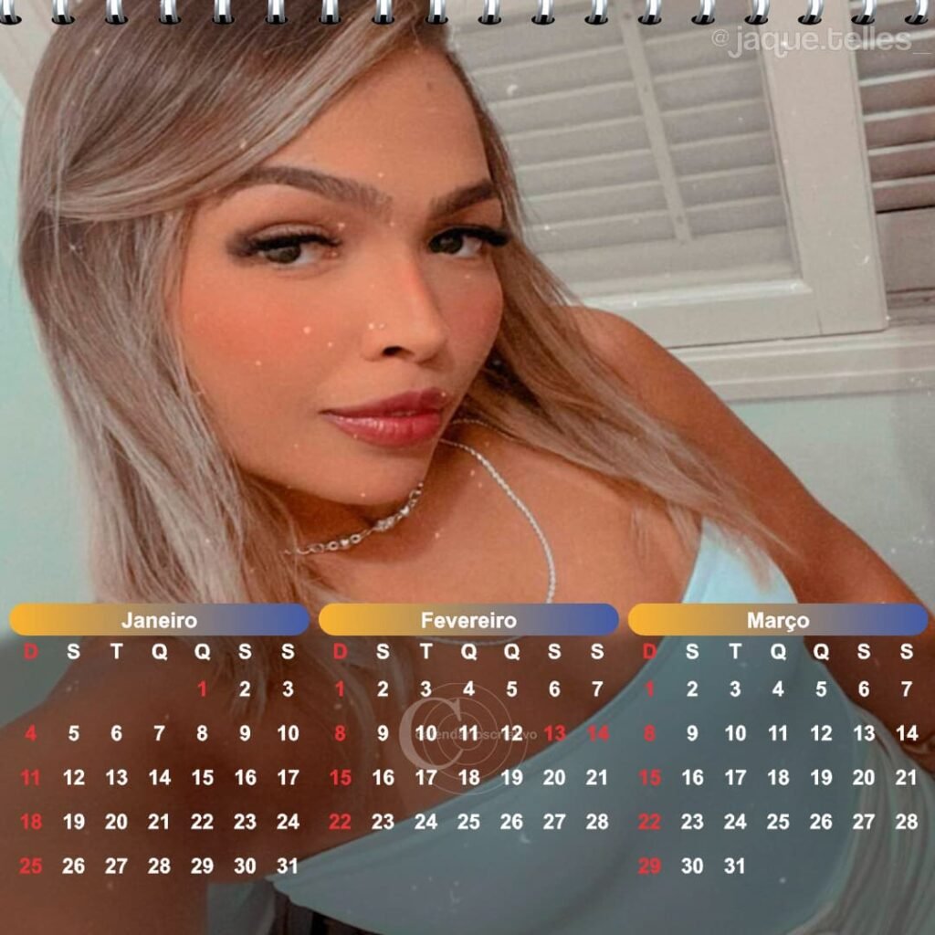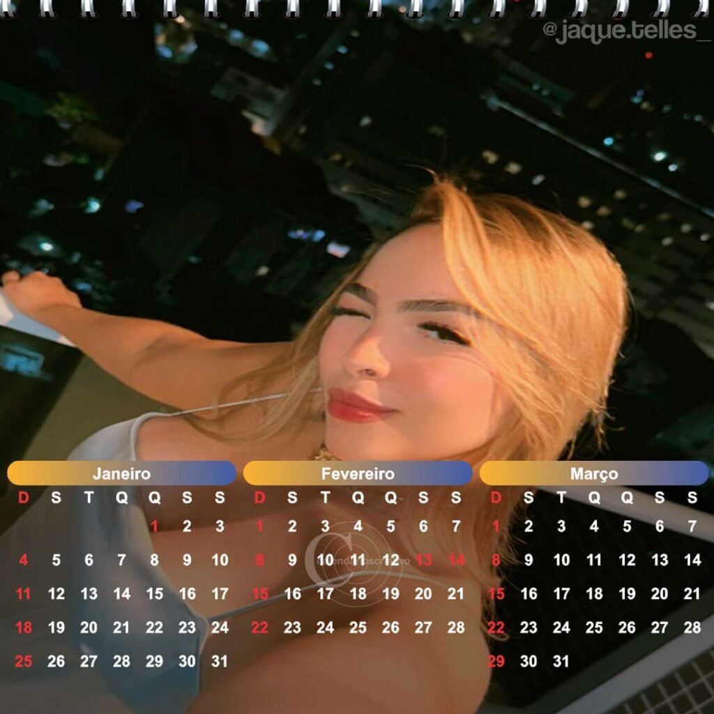 Apresentamos com orgulho nossos trabalhos de design gráfico e criação de calendários personalizados para o ano de 2026, trazendo como destaque a modelo Jaquetelles